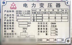 根据查询相关公开信息显示变压器铭牌,上面标注着型号、额定值及其它数据,便于用户了解变压器的运行性能。