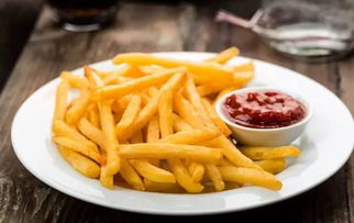 锅中油烧热,放入薯条炸至表面金黄,蘸番茄酱即可食用(炸的时候控制油温,因为土豆含水量较高,所以请用厨房纸巾沥干水份再炸,炸的时候也注意,孩子不要靠近,自己也不要被炸伤)。 炸薯条一种土豆条的油炸速食。 做饭是在。