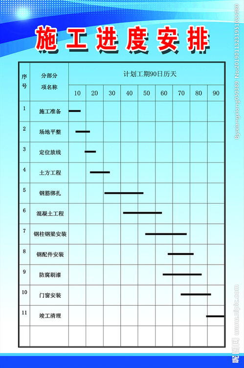 主要内容就是从工程的开始到结束,主要的施工工序、工艺所花费的时间,以及不同的专业穿插施工的流程。