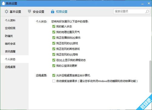 3.在【权限设置】的左边目录中找到【个人状态】。