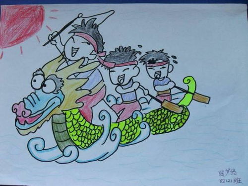船的上面画上三个三角样的粽子,且画上表情。