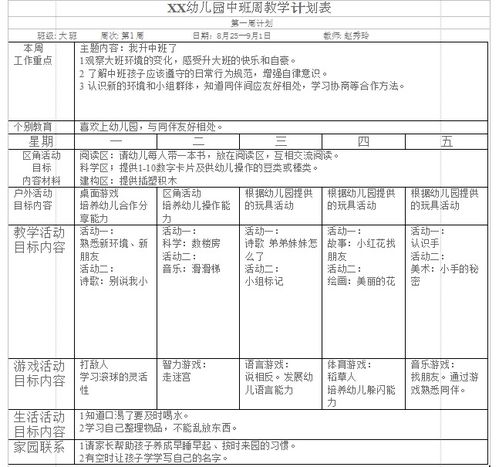 中班一周工作计划
