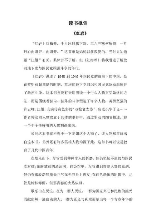 《红岩》读书心得体会(一) 从小在长辈们的故事中长大,其中关于共产党革命英雄的故事,关于敌人对地下党员实施的酷刑,令我小小的心中满是震惊,同时对刘胡兰、董存瑞、江姐、许云峰许多耳熟能详的英雄人物,充满了崇拜和钦佩。