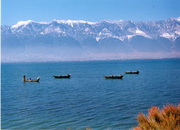 1.洱海 洱海位于大理古城东侧,青葱的苍山脚下,湖泊蔚蓝,以山水美景和独具风情的各个村镇而闻名于世,是大理四大名景之一。