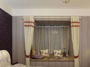 2.飘窗里面做纱帘,外面装窗帘适合卧室面积够大的家庭。