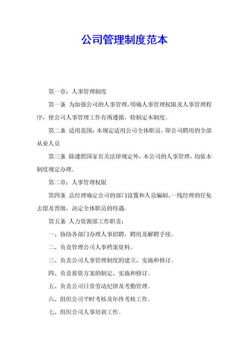 公司规章制度范本:一、公司所有的员工需要公司章程、公司的各项规章制度和决定。