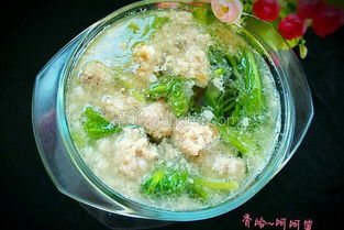 小白菜汆丸子的做法一:极品小白菜汆丸子 食材准备 猪肉馅 ,葱姜,青菜,鸡汤,料酒,生抽,盐,白胡椒粉,鸡精,香油,蛋清适量。