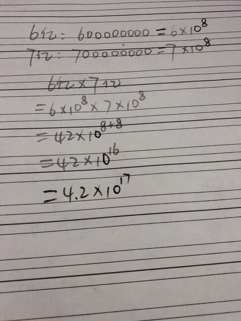 6亿×7亿=6×10^8×7×10^8=42×10^16=4.2×10^17。