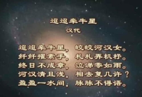 (1)课件出示诗句:迢迢牵牛星,皎皎河汉女。