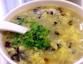 6、用汤冲开鸡蛋放入米醋麻油香菜少许即成。