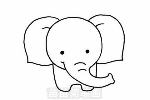 大象的简笔画 1、在纸的中上部分找出头部,然后画一条先下降再上升的弧线,画出象鼻。