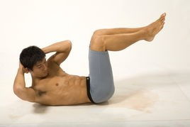 用手抱头,把头抬高到膝盖,腰部和腹部收紧。