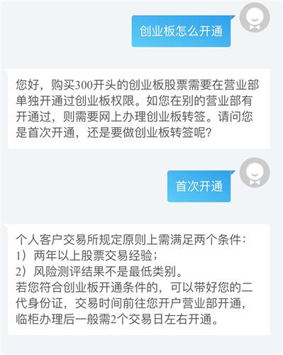 1.想开通创业板账户首先要满足开通条件:一是在开通权限前20个交易日证券账户日均资产在10万元以上,二是要有两年的交易经验。