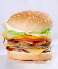 汉堡是用面包、肉、生菜以及酱料一起组成的。