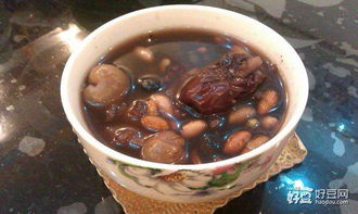 主料:紫米50g、大米50g、赤小豆20g、绿豆20g、核桃。