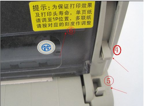 2、然后把链式纸上面的孔放到打印机的那些丁里,那纸张的孔至少要放进去三个孔以上以保证纸张平衡,再把夹子合回去。